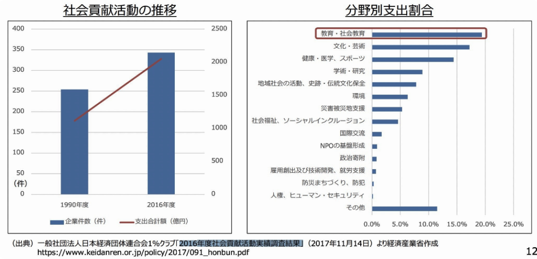 「企業の社会貢献活動は増加しており、特に教育分野に関心あり」