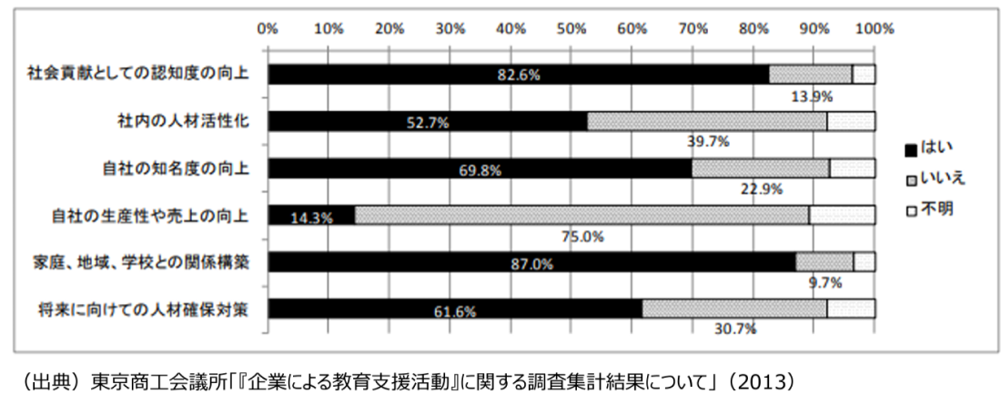 東北大学の論文では、教育CSRに取り組んだ企業の約9割が企業イメージの向上を実感したと報告しています。